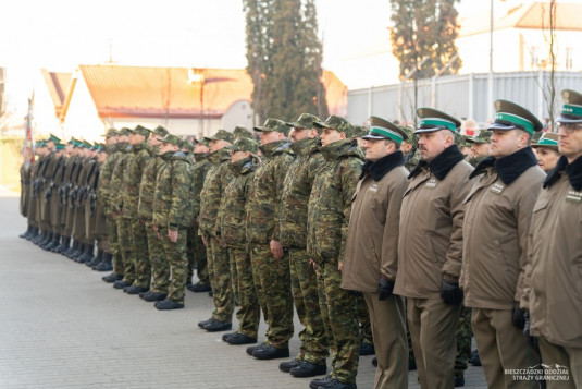 Gen. bryg. SG Tomasz Zybiński pogratulował nowo przyjętym funkcjonariuszom pozytywnego zakończenia procesu rekrutacji. Podkreślił, że funkcjonariusze rozpoczynają służbę graniczną, która wymaga dyscypliny i gotowości do działania w różnych warunkach. W sposób szczególny zwrócił się także do rodzin i najbliższych nowo wcielonych funkcjonariuszy BiOSG. Podkreślił ich szczególną rolę we wsparciu i zrozumieniu wyzwań, z jakimi będą mierzyć się mundurowi, to przede wszystkim dyspozycyjność i ciągłe zaangażowanie w działania zapewniające bezpieczeństwo Polski oraz zewnętrznej granicy UE.