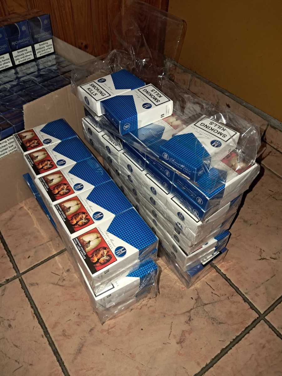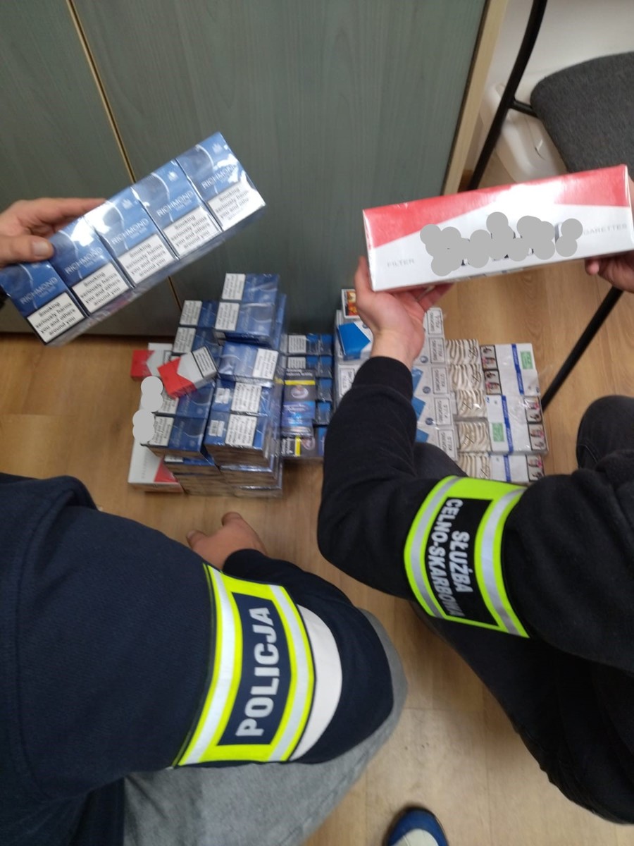 Policjanci wspólnie z funkcjonariuszami podkarpackiego urzędu celno-skarbowego, podczas przeszukania, w jednym z pomieszczeń, zabezpieczyli papierosy różnych marek, bez polskich znaków akcyzy skarbowej. Łącznie 33 kartony – ponad 300 paczek papierosów różnych marek.