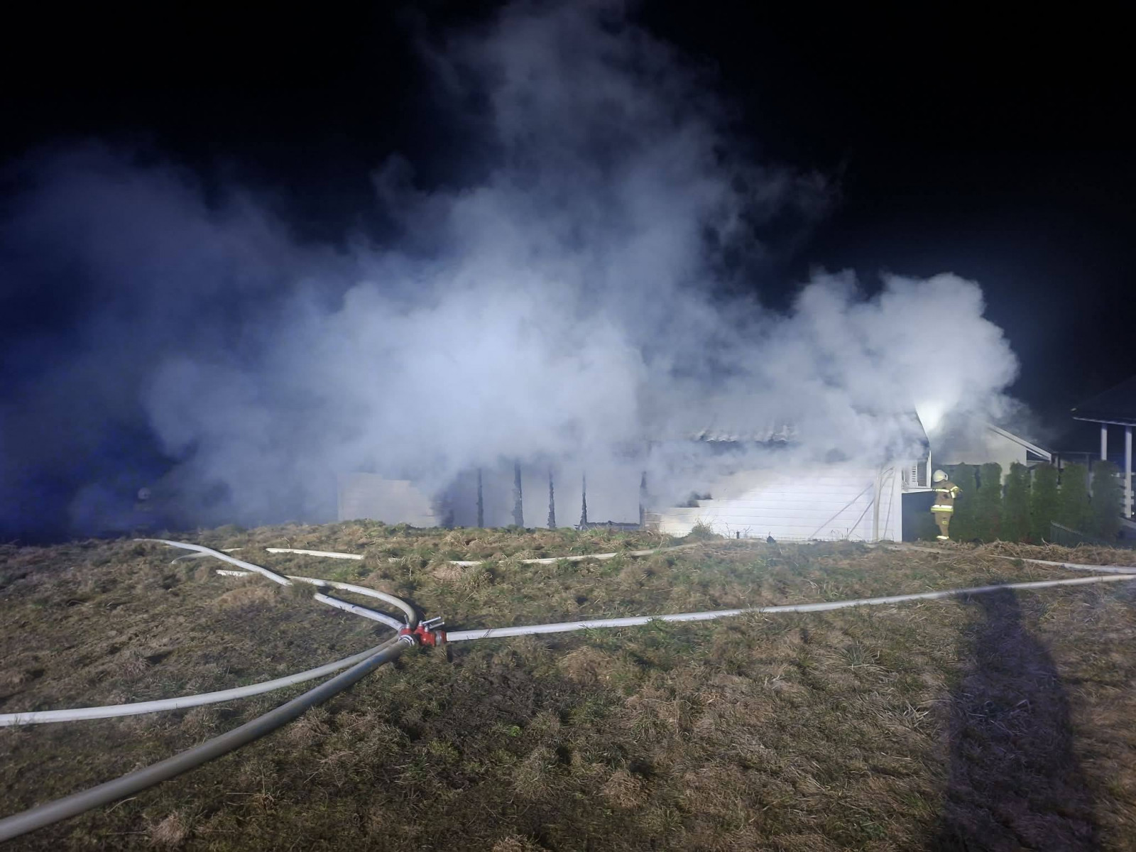 W działaniach gaśniczych brały udział liczne siły ratownicze. Na miejscu pracowali strażacy z OSP KSRG Polańczyk, dwa zastępy z OSP KSRG Średnia Wieś, strażacy z OSP Myczków oraz dwa zastępy z PSP Lesko. Obecni byli również funkcjonariusze Policji, którzy wyjaśniają okoliczności zdarzenia.