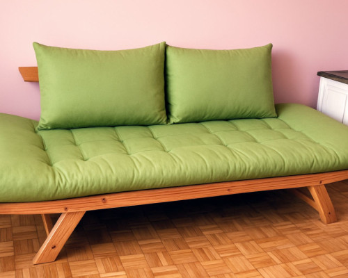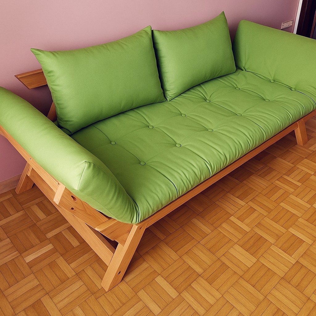 Futon (ok. 12 cm grubości): wypełniony naturalnym materiałem z włókniną bawełnianą obszyty mocnym pokrowcem pikowanym kuzikami (oczywiście można go zastąpić materacem odpowiednich rozmiarów).