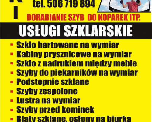 dorabianie szyb do maszyn budowlanych, leśnych, rolniczych (szkło hartowane, klejone ) wiercenie otworów wykrawanie rożnych kształtów,szlifowanie krawędzi