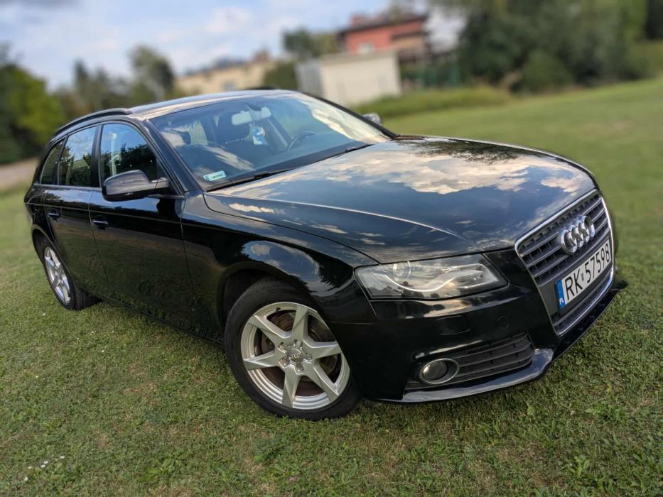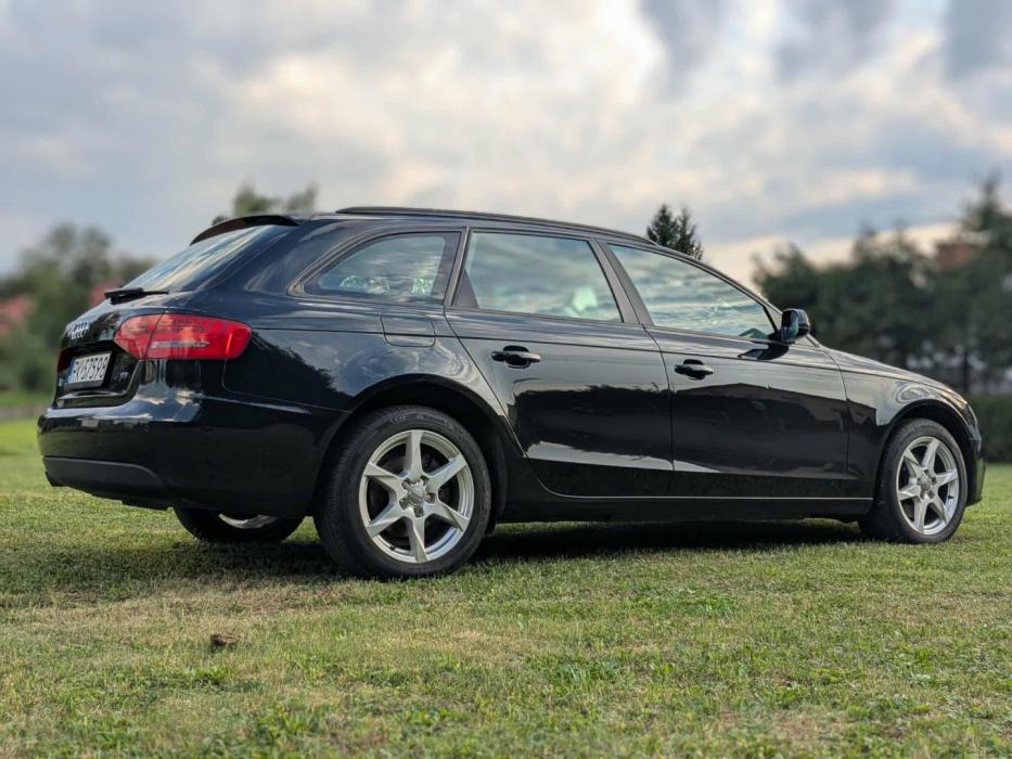 Audi A4 B8 Avant 2.0 TDI 143KM ze skrzynią manualną. Samochód sprowadzony z Niemiec, bezwypadkowy, garażowany. Technicznie i wizualnie w bardzo dobrym stanie, wymienione: rozrząd, olej i komplet filtrów, koło dwumasowe, klocki hamulcowe a także wykonana regeneracja klimatyzacji. W zestawie drugi komplet kół zimowych na felgach stalowych lub aluminiowych z A4 B7.