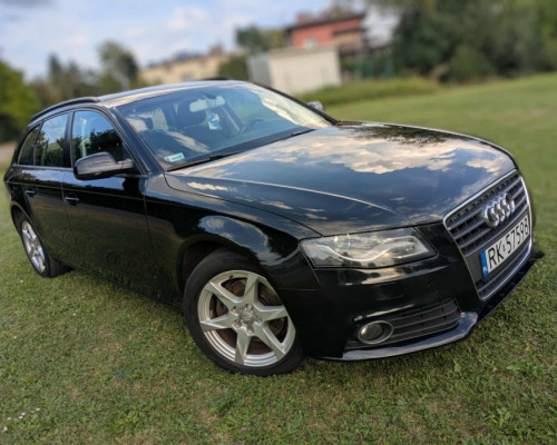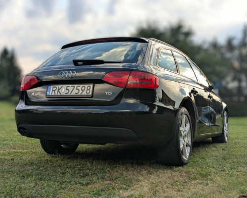 Audi A4 B8 Avant 2.0 TDI 143KM ze skrzynią manualną. Samochód sprowadzony z Niemiec, bezwypadkowy, garażowany. Technicznie i wizualnie w bardzo dobrym stanie, wymienione: rozrząd, olej i komplet filtrów, koło dwumasowe, klocki hamulcowe a także wykonana regeneracja klimatyzacji. W zestawie drugi komplet kół zimowych na felgach stalowych lub aluminiowych z A4 B7.