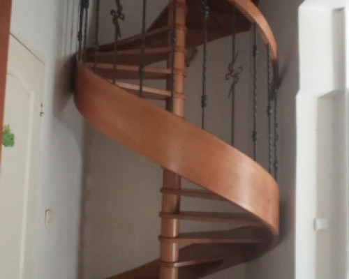 Parter połączony jest z piętrem drewnianymi krętymi schodami.