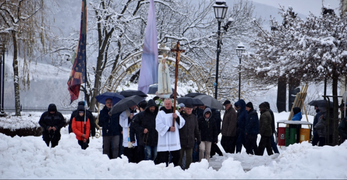 Po Mszy świętej odbywa się kilkunastominutowe rozważanie przed wystawionym Najświętszym Sakramencie. Po odśpiewaniu „Bogurodzicy” wyrusza procesja z figurą Matki Bożej Fatimskiej, podczas której na ulicach miasta odmawiana jest jedna część różańca. Mężczyźni maszerują ul. Grzegorza, 3 Maja (deptak), Rynek, Grodka, a swoją modlitwę kończą Apelem Jasnogórski pod pomnikiem św. Michała Archanioła przed sanocką farą.
